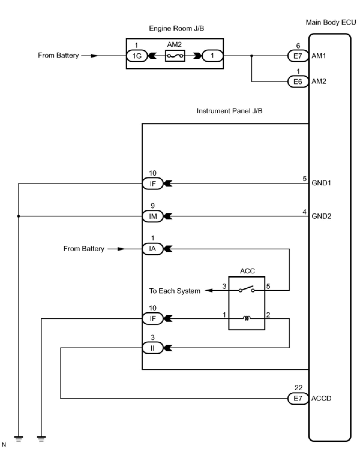 3. CHECK WIRE HARNESS (MAIN BODY ECU - BATTERY)