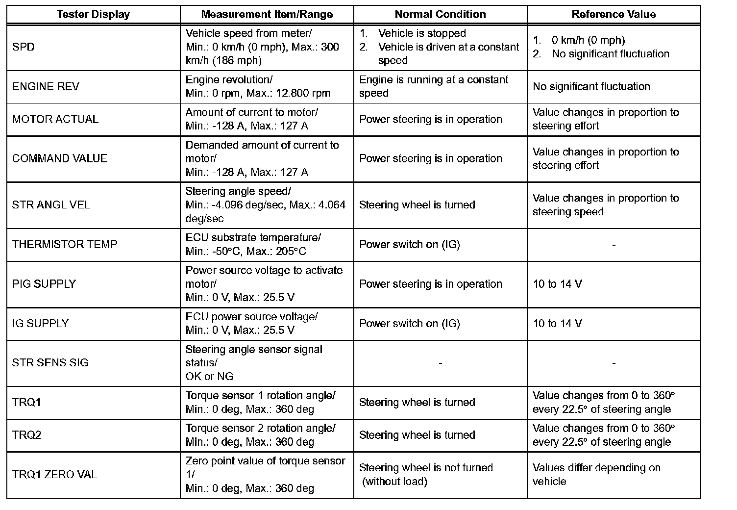 HINT: By accessing the data list displayed on the intelligent tester, values of switches, sensors and other related parts can be checked without removing any parts. Reading the data list is the first step in troubleshooting and is one method to shorten labor time.
