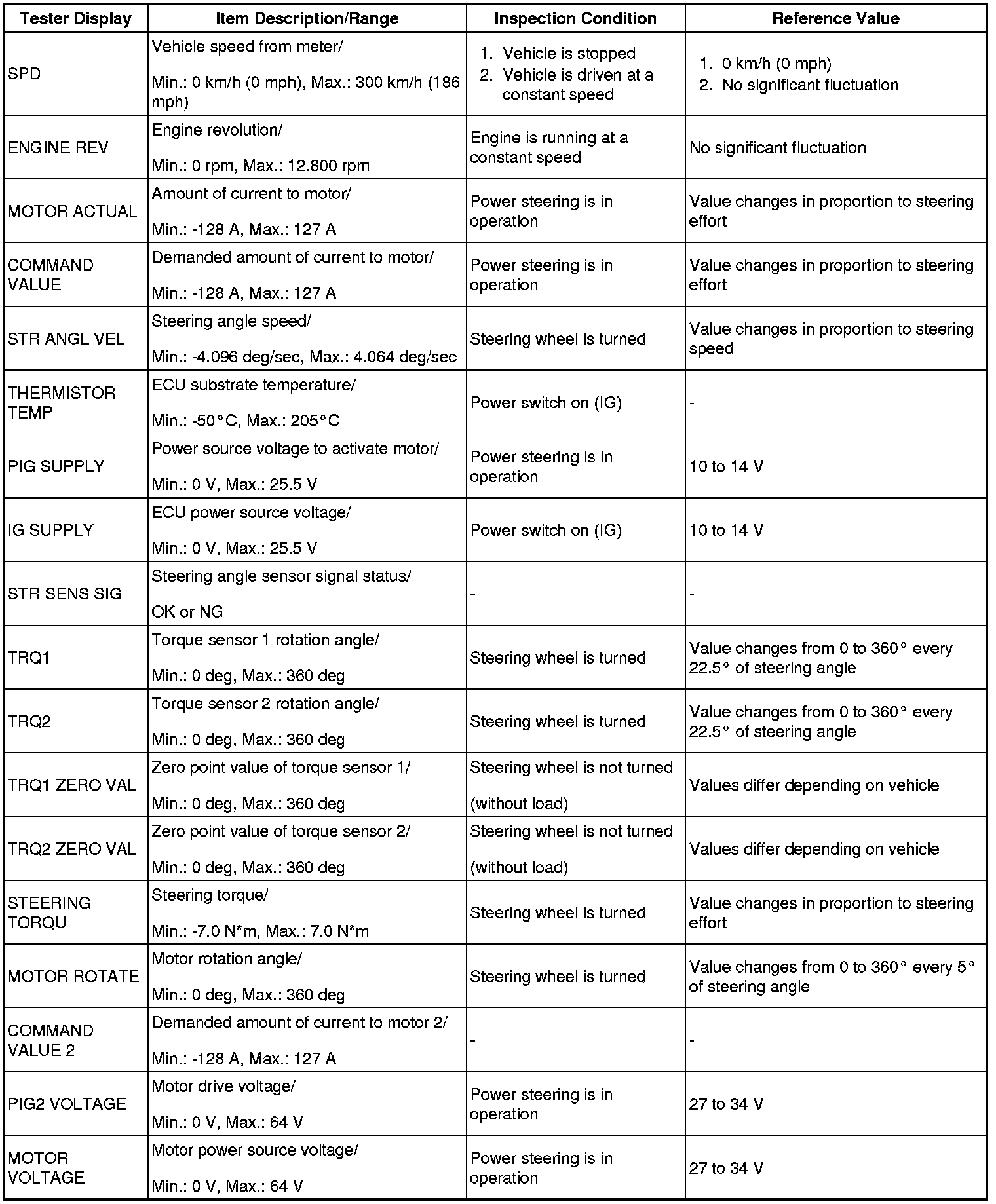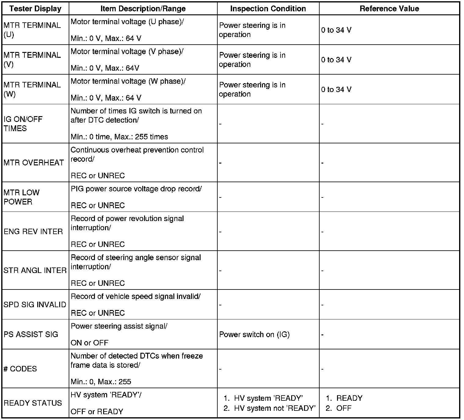 POWER STEERING: ELECTRONIC POWER STEERING SYSTEM: FREEZE FRAME DATA