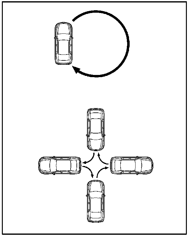 4. Drive the vehicle slowly at 5 mph (8 km/h), or less, in a circle until the direction is displayed. If there is NOT enough space to drive in a circle, turn the car around as shown, doing two 3-point turns in succession.