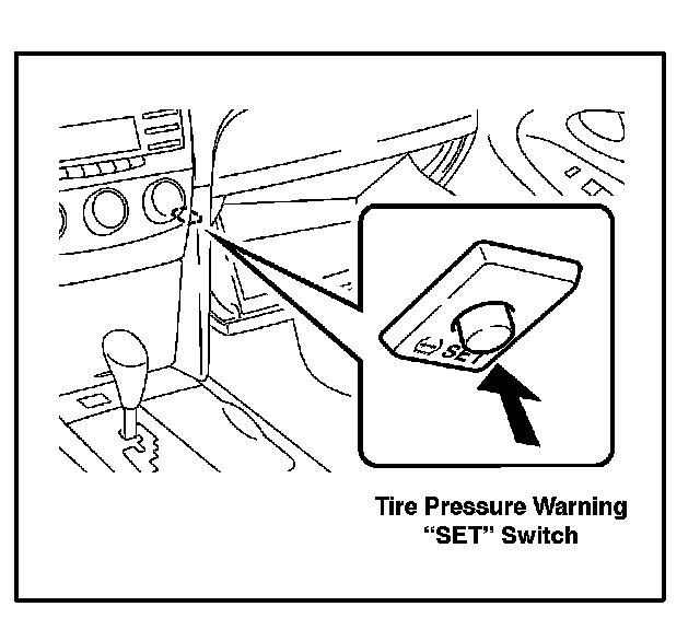 2. Push and hold the Tire Pressure Warning "SET" switch for 3 seconds until the Low Tire Pressure Warning Light blinks 3 times.