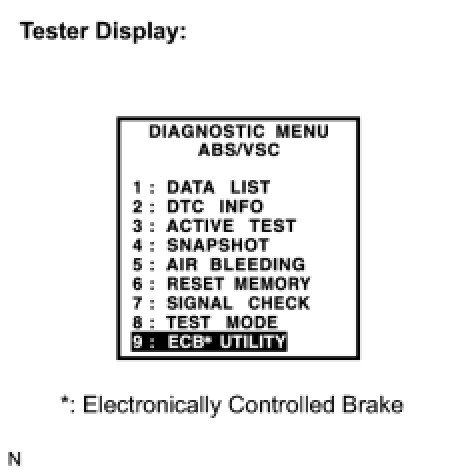 (5) Set the intelligent tester to Test Mode (select "ECB* UTILITY").