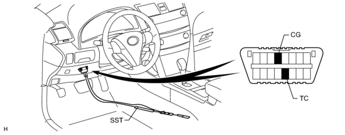(1) Using SST, connect terminals TC and CG of the DLC3.