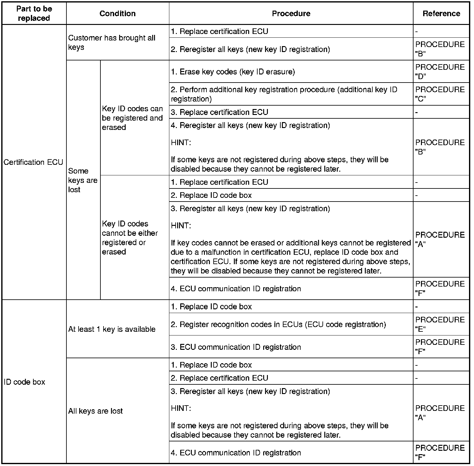 - Code registration is needed when the certification ECU, ID code box, steering lock ECU or key is replaced with a new one.