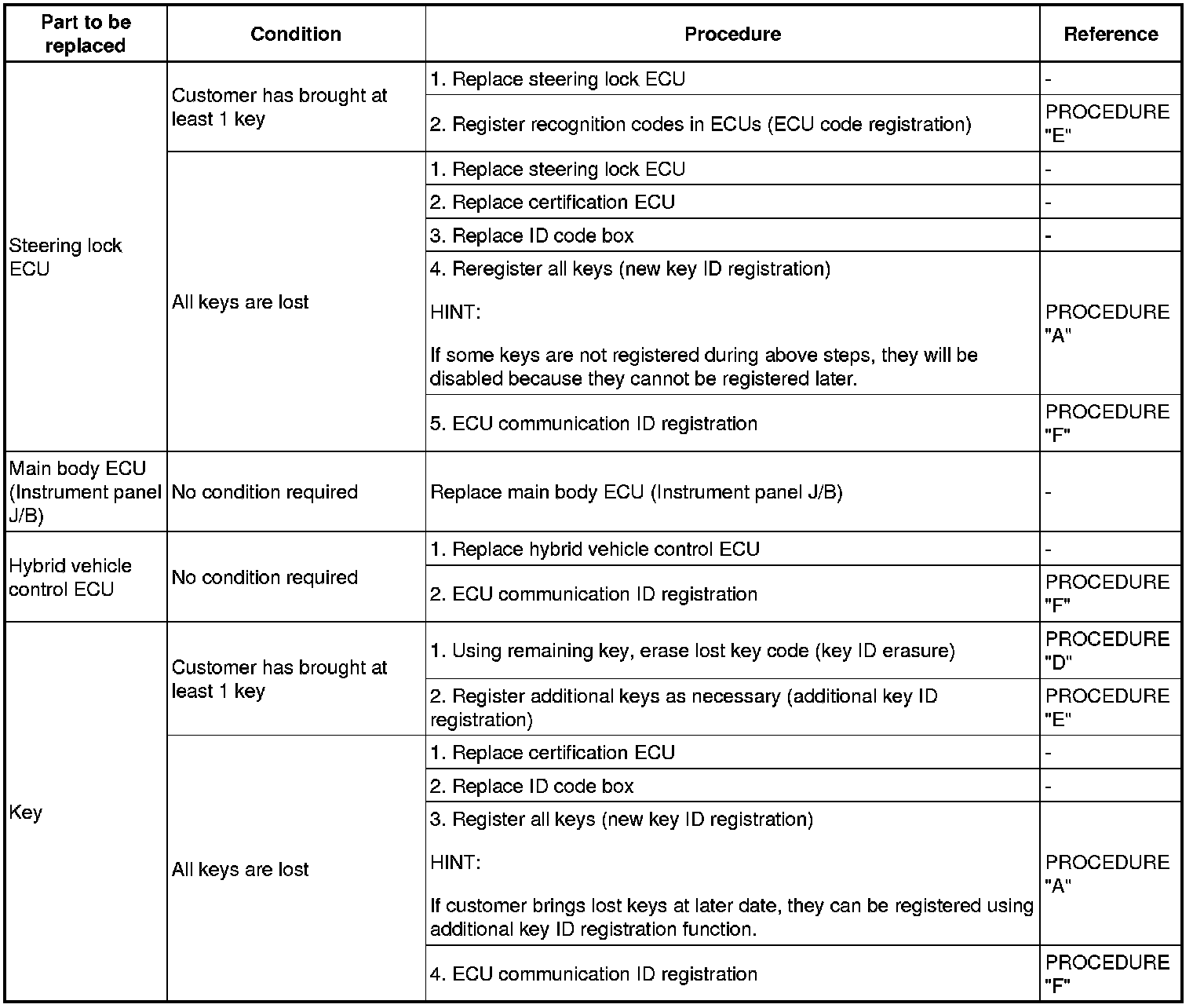 - The ECU communication ID should be registered when the ID code box and/or the hybrid vehicle control ECU is replaced in order to match these ECU communication ID.