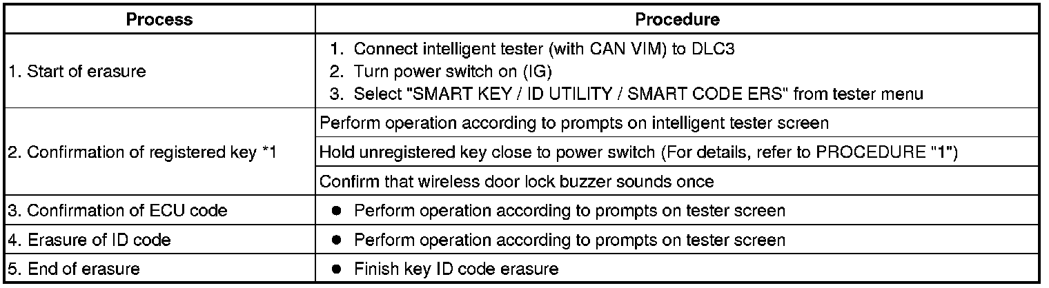 - *1: Perform this process for one of the keys registered for the vehicle. Finish the procedure within 30 seconds. If the procedure has not been finished within the specified time, perform erasure procedures from process 1 again.
