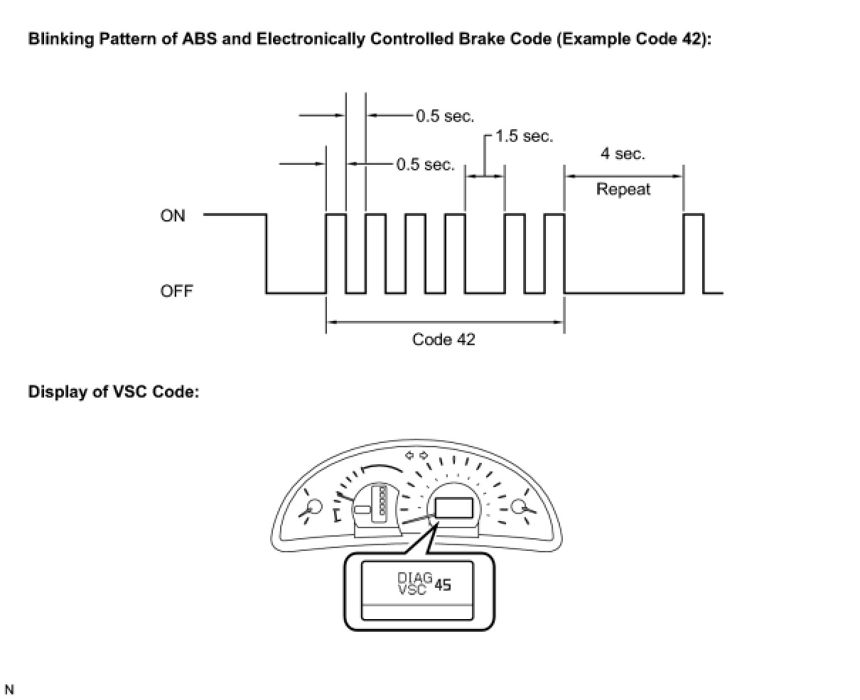 (5) Check that no codes other than ABS code 42, VSC code 45 and Electronically Controlled Brake code 48, 66, or 95 are stored in the diagnostic system.