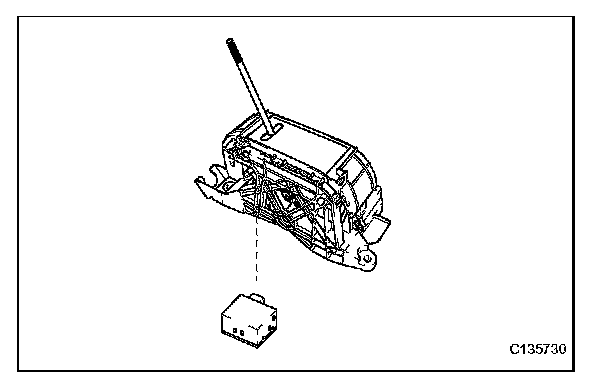 c Install the indicator light wire to the clamp on the shift lock control unit.