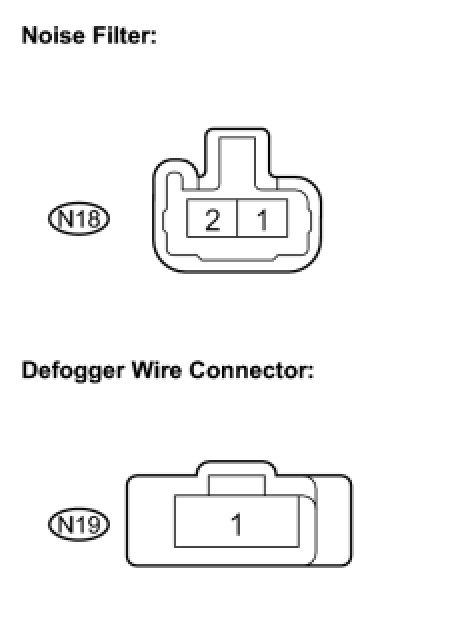 13. CHECK WIRE HARNESS (NOISE FILTER - DEFOGGER WIRE CONNECTOR)