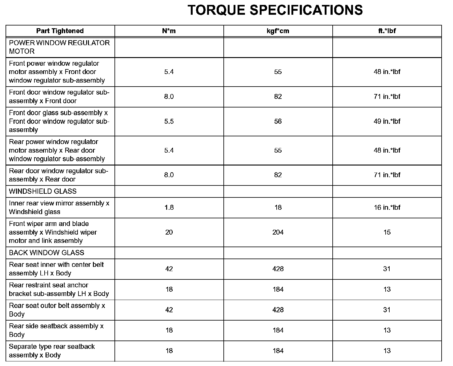 Windshield / Windowglass - Torque Specifications: