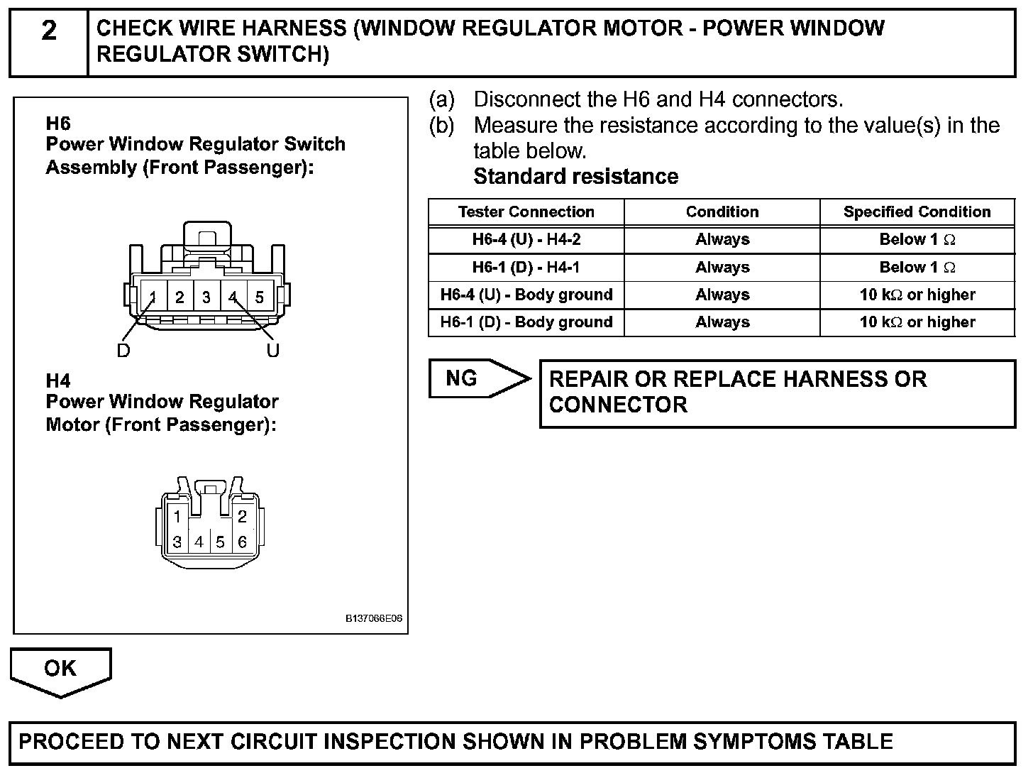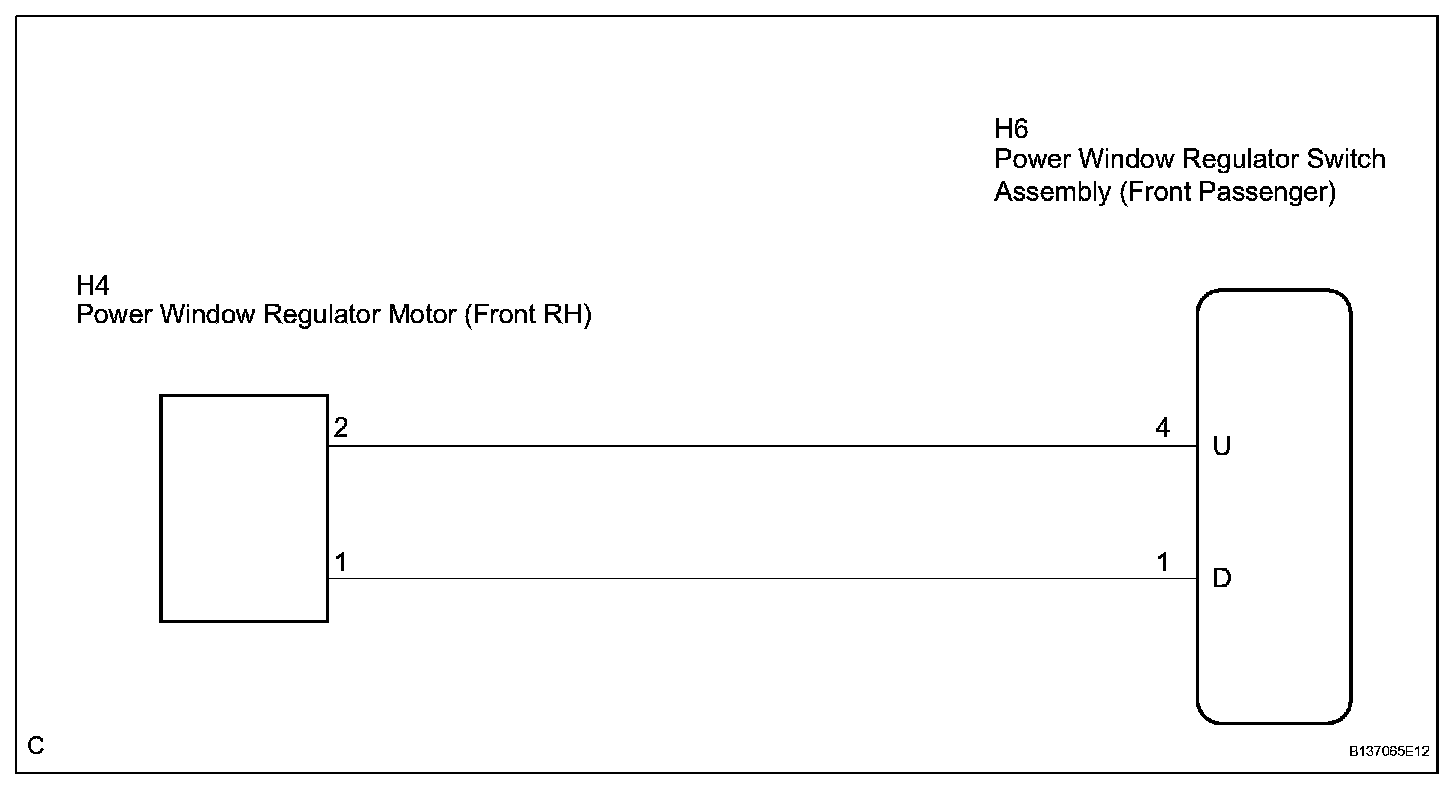 This circuit transmits signals from the power window regulator switch assembly (Front RH) to the power window regulator motor (Front RH).
