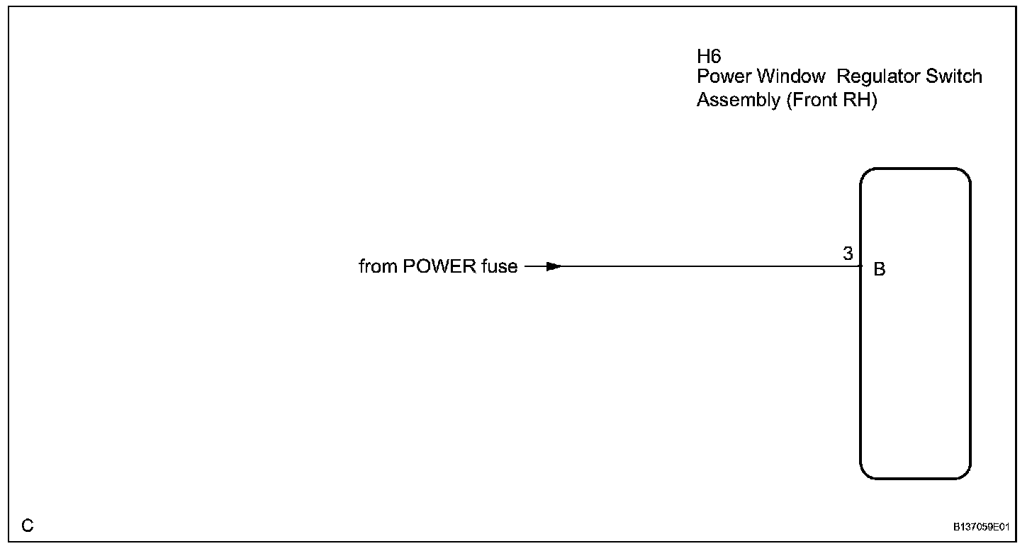 This circuit supplies power to operate the power window regulator switch assembly (Front RH).