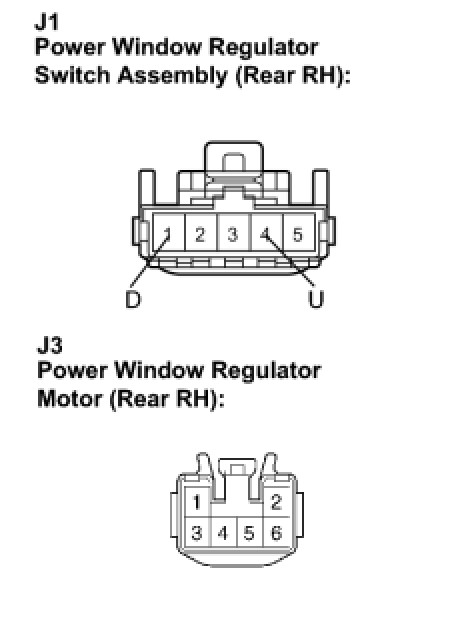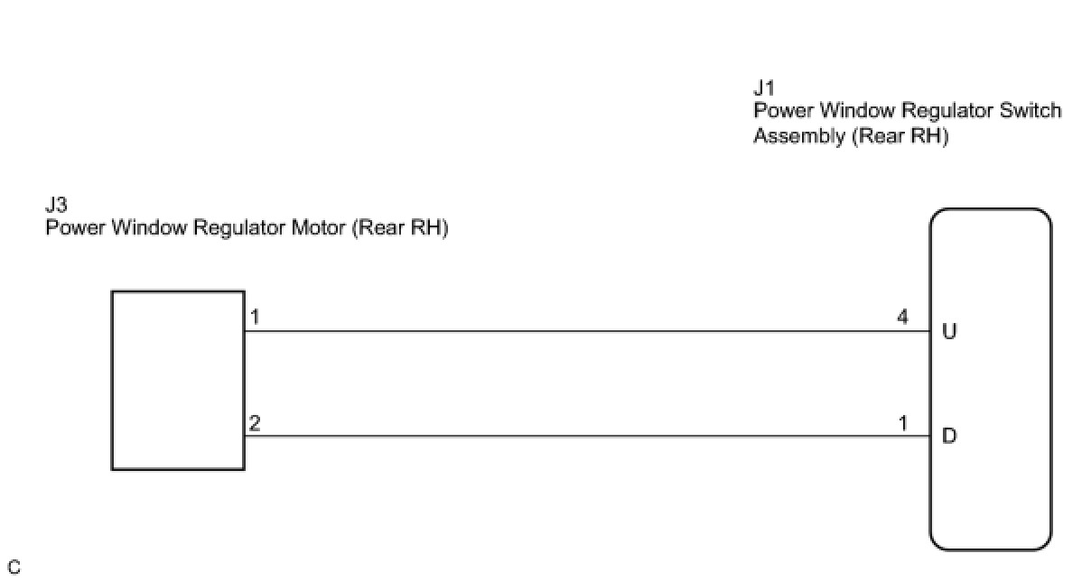 This circuit transmits signals from the power window regulator switch assembly (Rear RH) to the power window regulator motor (Rear RH).