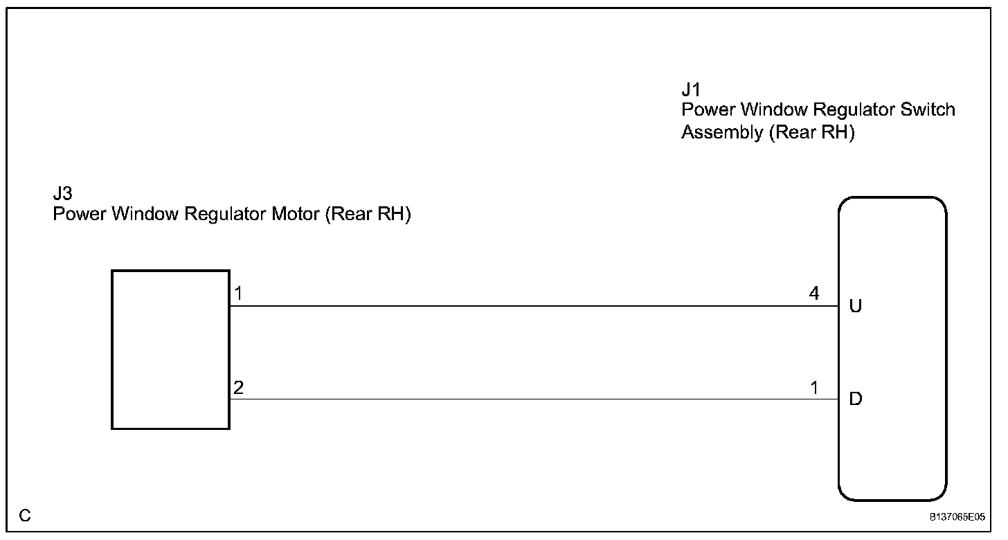 This circuit transmits signals from the power window regulator switch assembly (Rear RH) to the power window regulator motor (Rear RH).
