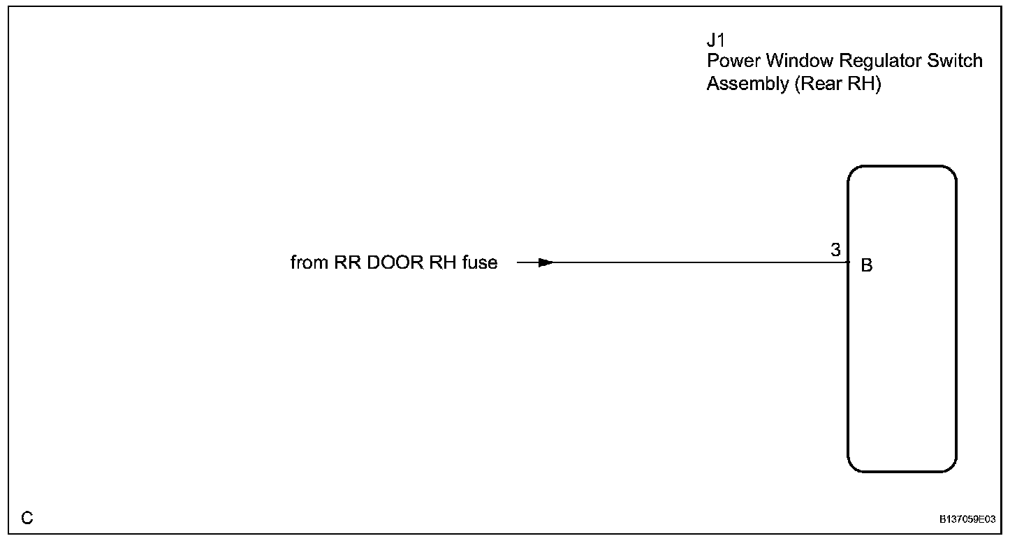 This circuit supplies power to operate the power window regulator switch (Rear RH).