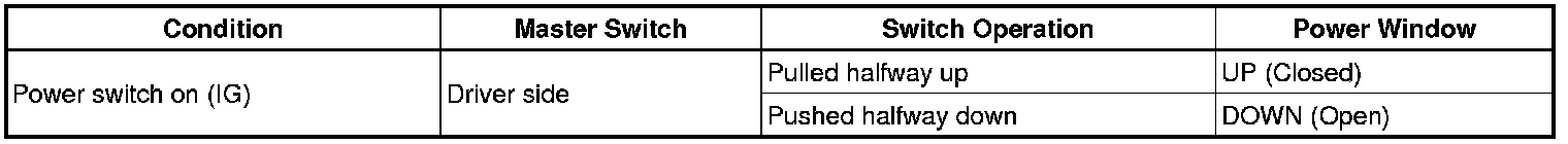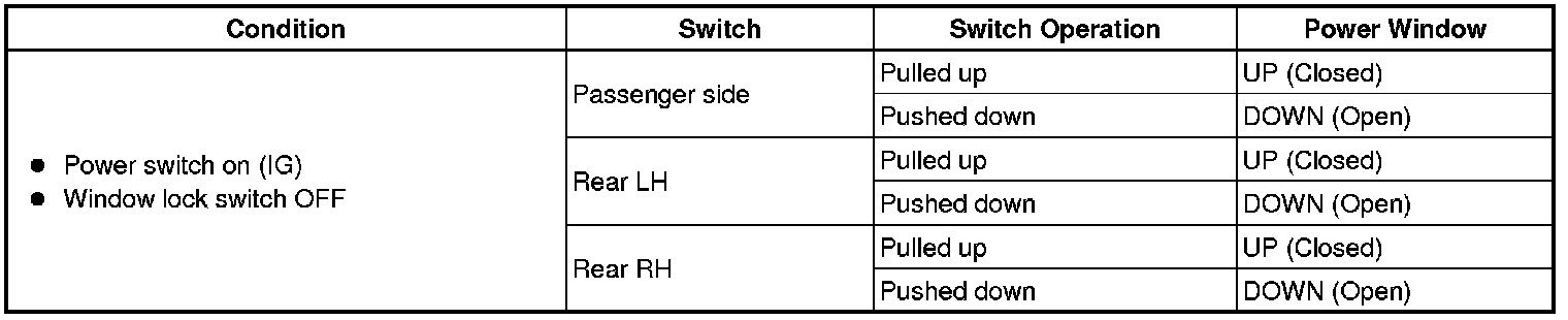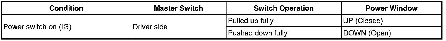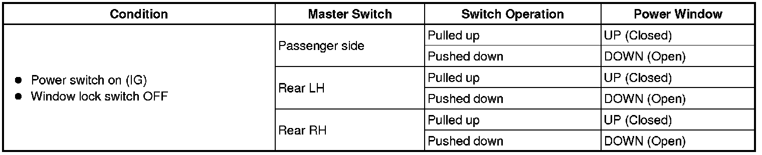 WINDSHIELD / WINDOWGLASS: POWER WINDOW CONTROL SYSTEM: OPERATION CHECK