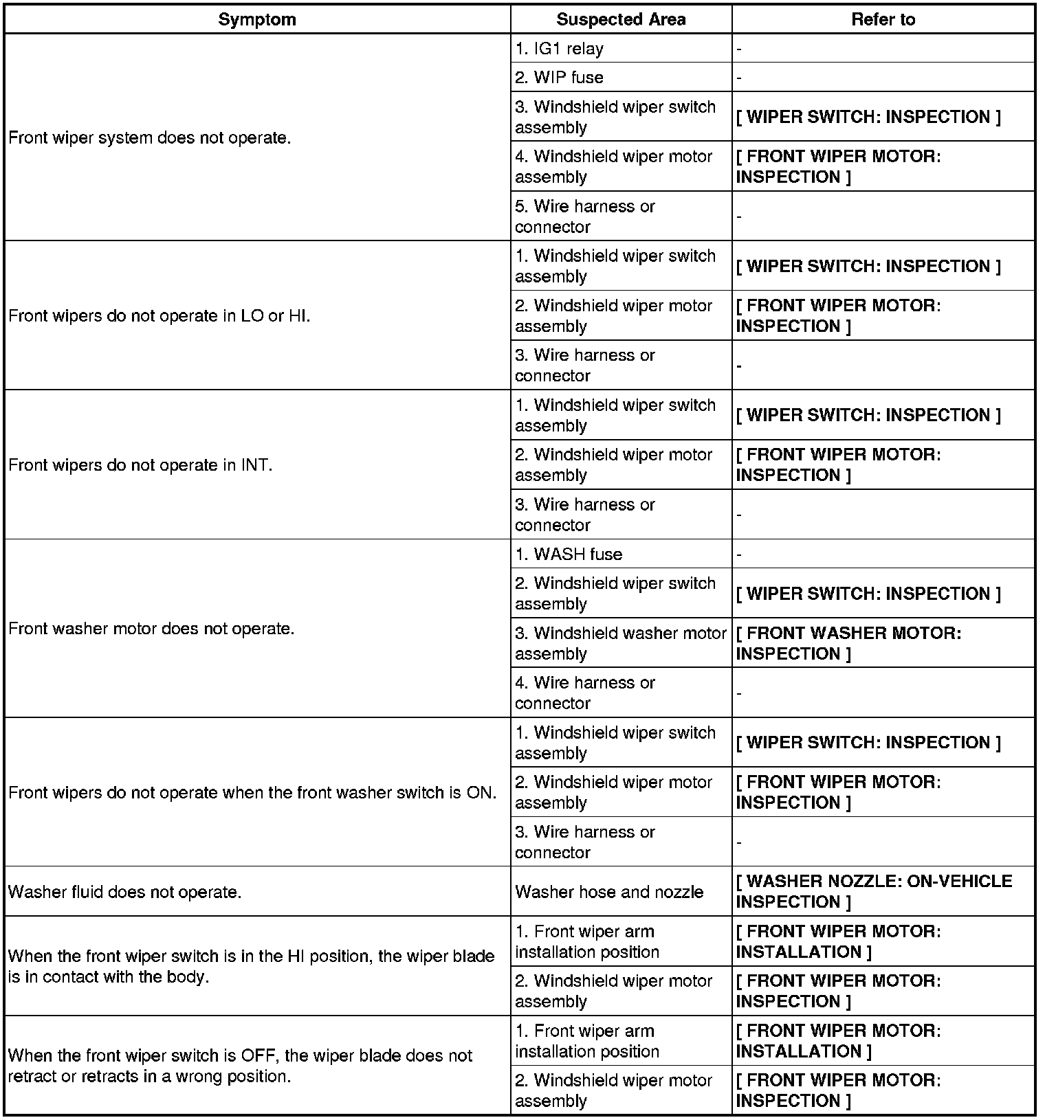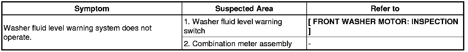 WIPER AND WASHER: WIPER AND WASHER SYSTEM: PROBLEM SYMPTOMS TABLE