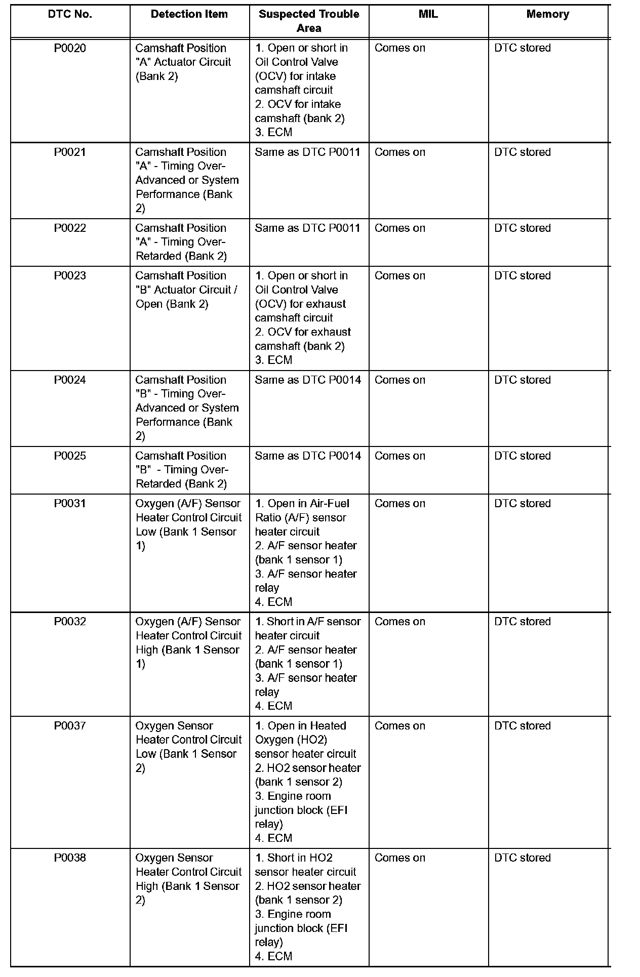 P0020-P0038: