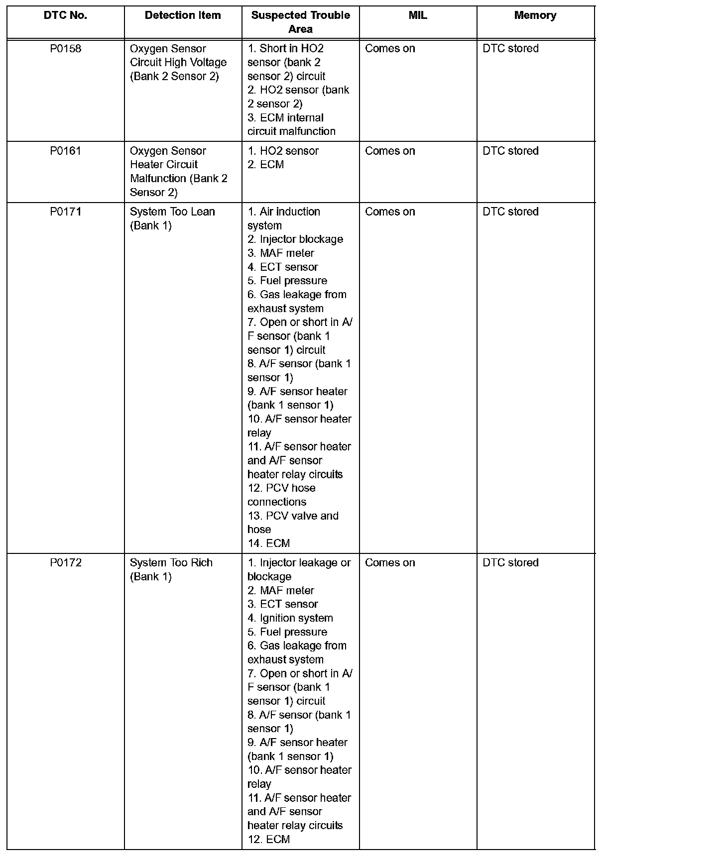 P0158-P0172: