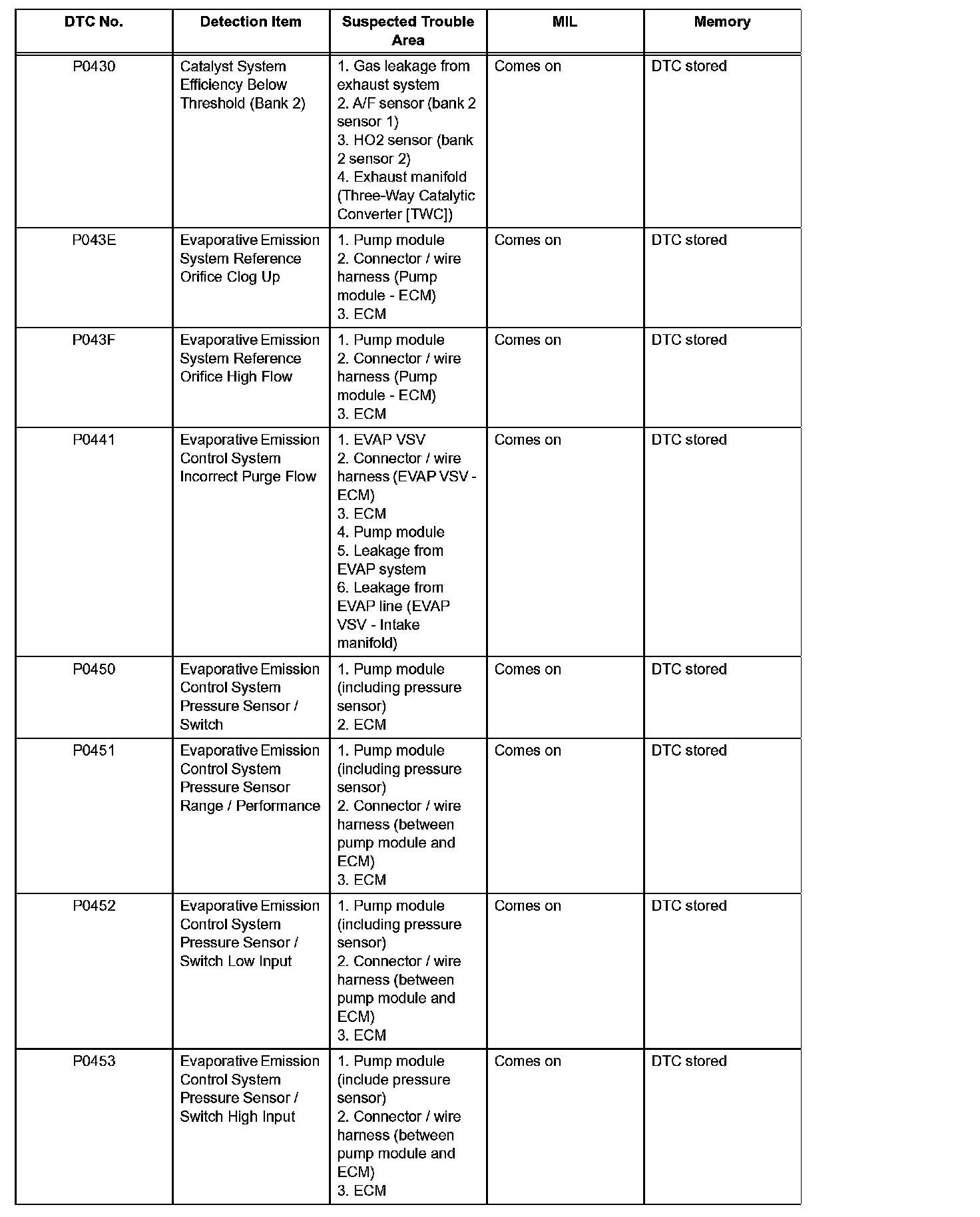 P0430-P0453: