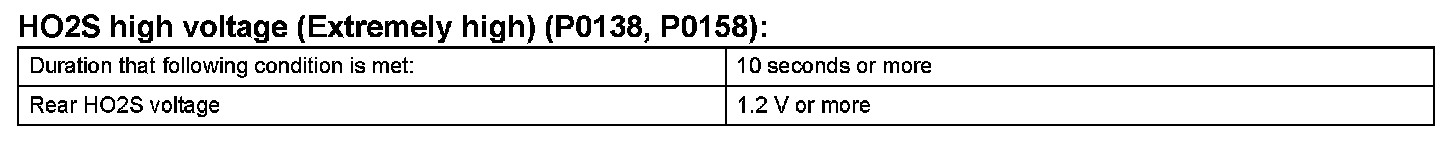 HINT: DTC P0138 or P0158 is also set if the HO2 sensor voltage output is more than 1.2 V for 30 seconds or more.