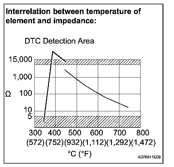During normal air-fuel ratio feedback control, there are small variations in the exhaust gas oxygen concentration. In order to continuously monitor the slight variation of the HO2 sensor signal while the engine is running, the impedance* of the sensor is measured by the ECM. The ECM determines that there is a malfunction in the sensor when the measured impedance deviates from the standard range.