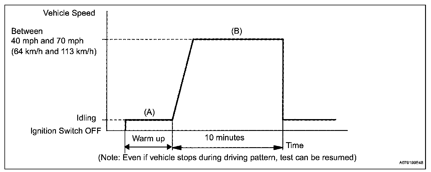 8. Drive the vehicle at between 40 mph and 70 mph (64 km/h and 113 km/h) for at least 10 minutes (Procedure "B").