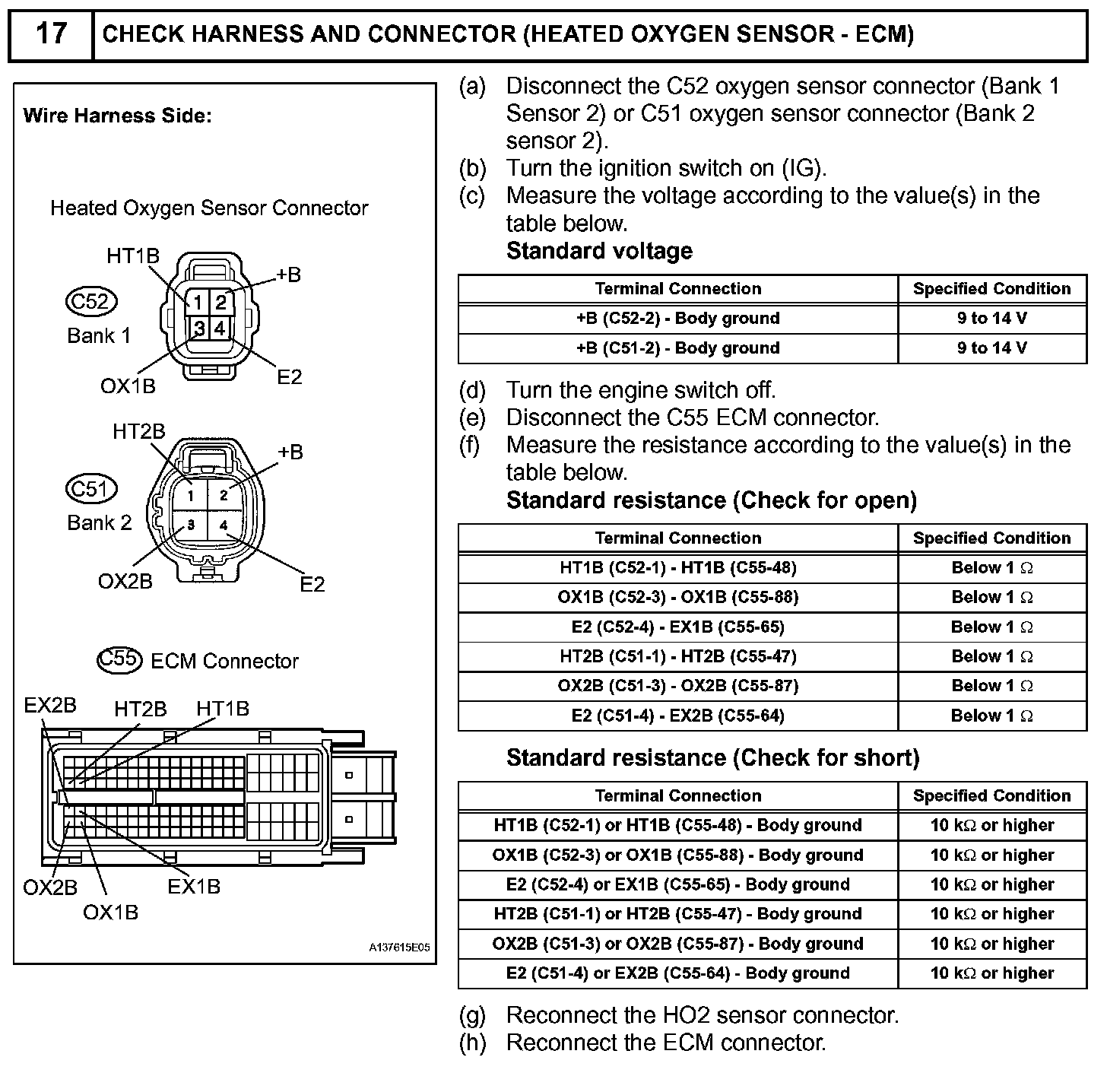 3. Open or Short in Heated Oxygen (HO2) Sensor Circuit (DTCs P0137 and P0157 or P0138 and P0158)