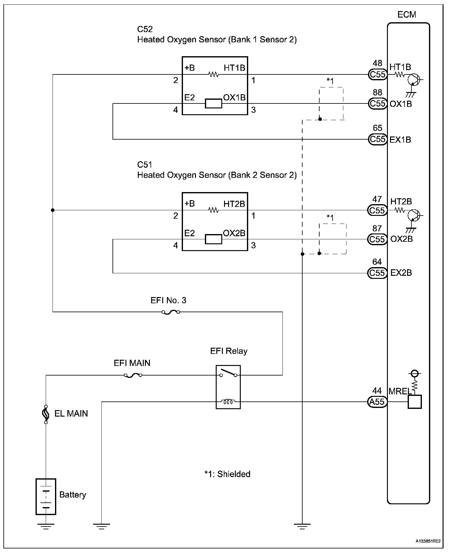 - The ECM provides a pulse width modulated control circuit to adjust the current through the heater. The HO2 sensor heater circuit uses a relay on the B+ side of the circuit.