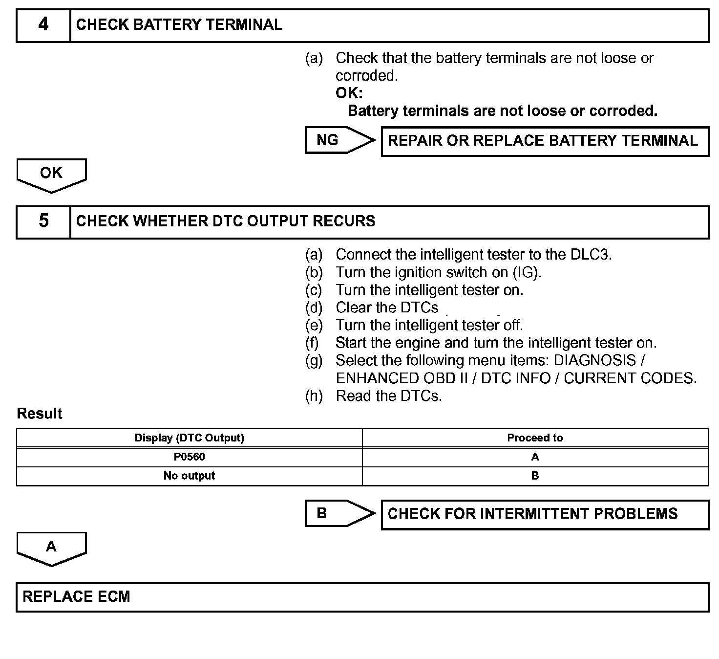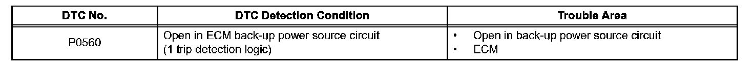 HINT: If DTC P0560 is set, the ECM does not store other DTCs.