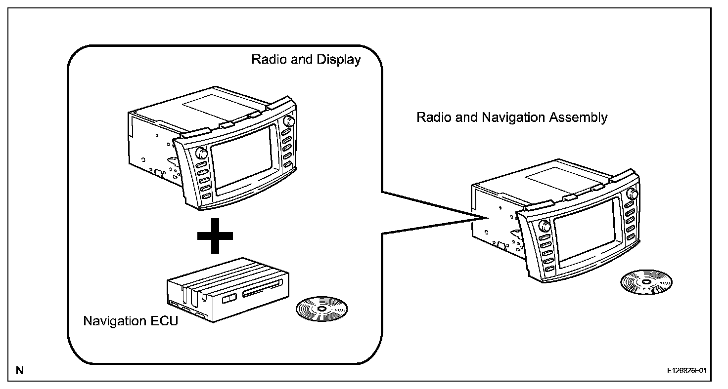 a. The radio and navigation assembly (built-in navigation ECU) uses a laser pickup to read the digital signals recorded on a DVD.