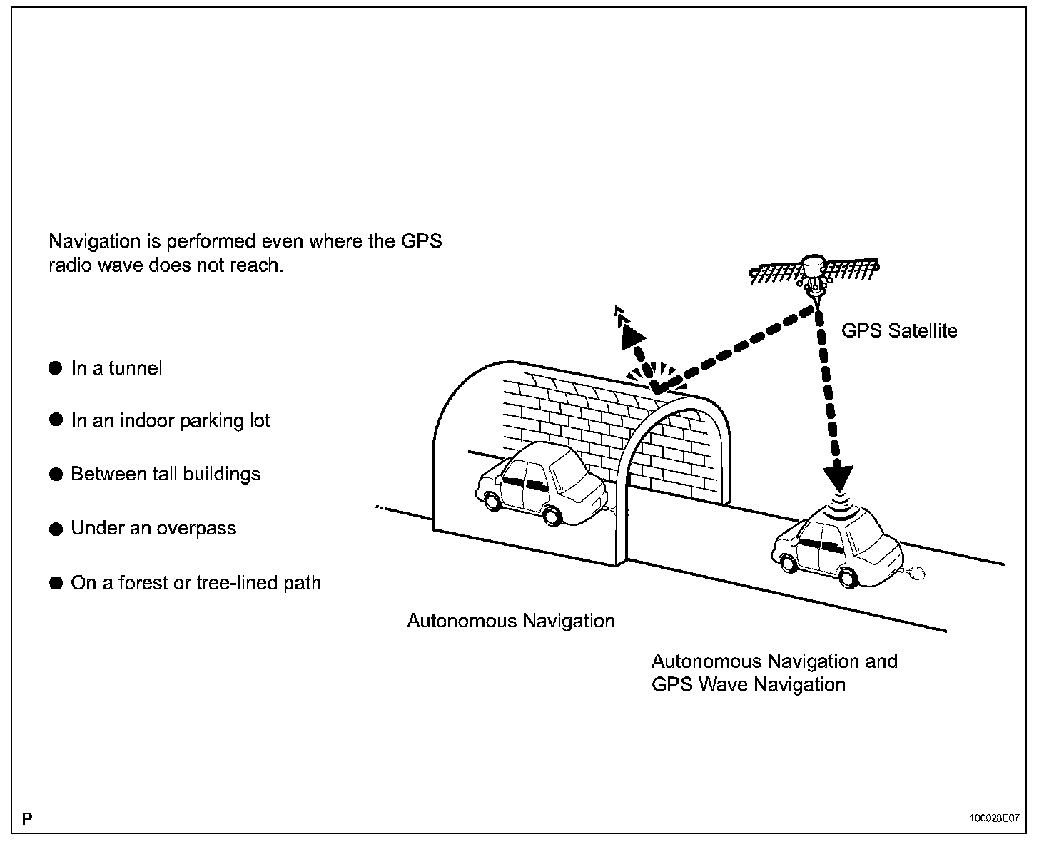 HINT: The combination of autonomous and GPS navigation makes it possible to display the vehicle position even when the vehicle is in places where the GPS radio wave cannot receive a signal. When only autonomous navigation is used, however, the mapping accuracy may slightly decline.