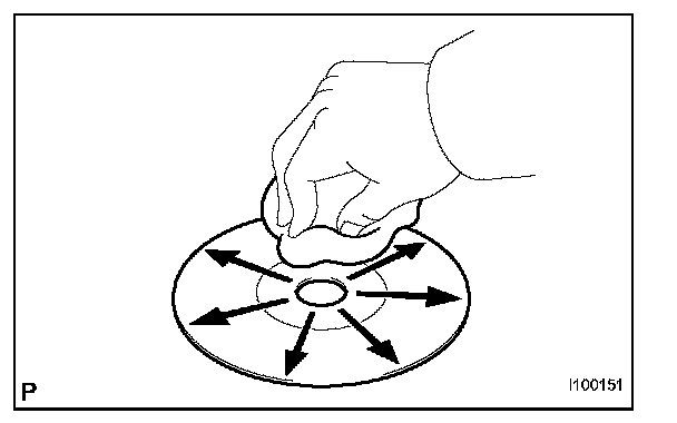 1. If dirt is on the disc surface, wipe it clean with a soft dry cloth such as an eyeglass cleaner for plastic lenses from the inside to the outside in a radial direction.