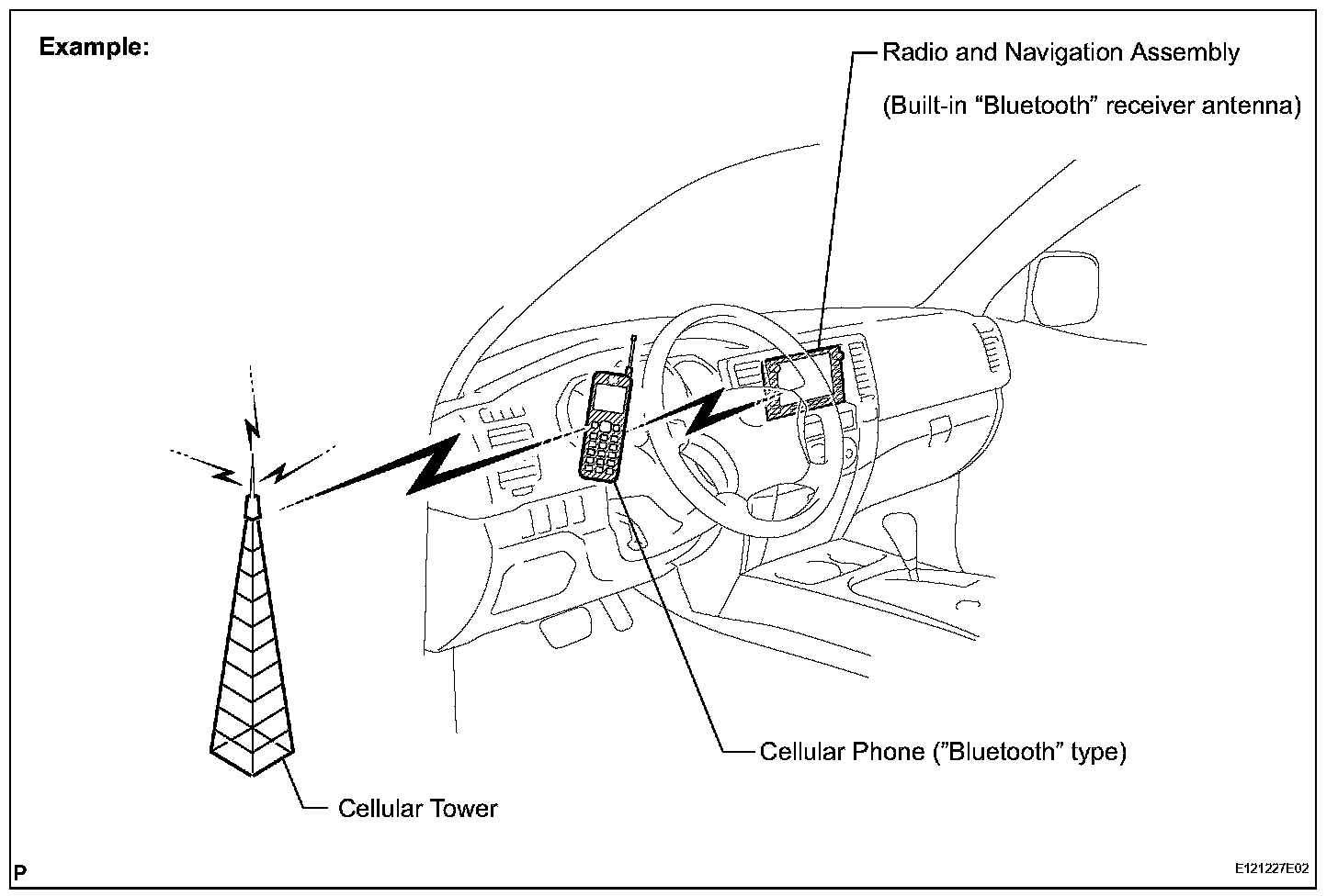 b. "Bluetooth" is a new wireless connection technology that uses the 2.4 GHz frequency band. This makes it possible to connect a cellular phone ("Bluetooth" compatible phone *1) to the radio and navigation assembly (the "Bluetooth" system is built in), and use the handsfree function of the cellular phone, even if it is in a pocket or bag. As a result, it is not necessary to use a connector attached directly to the cellular phone.