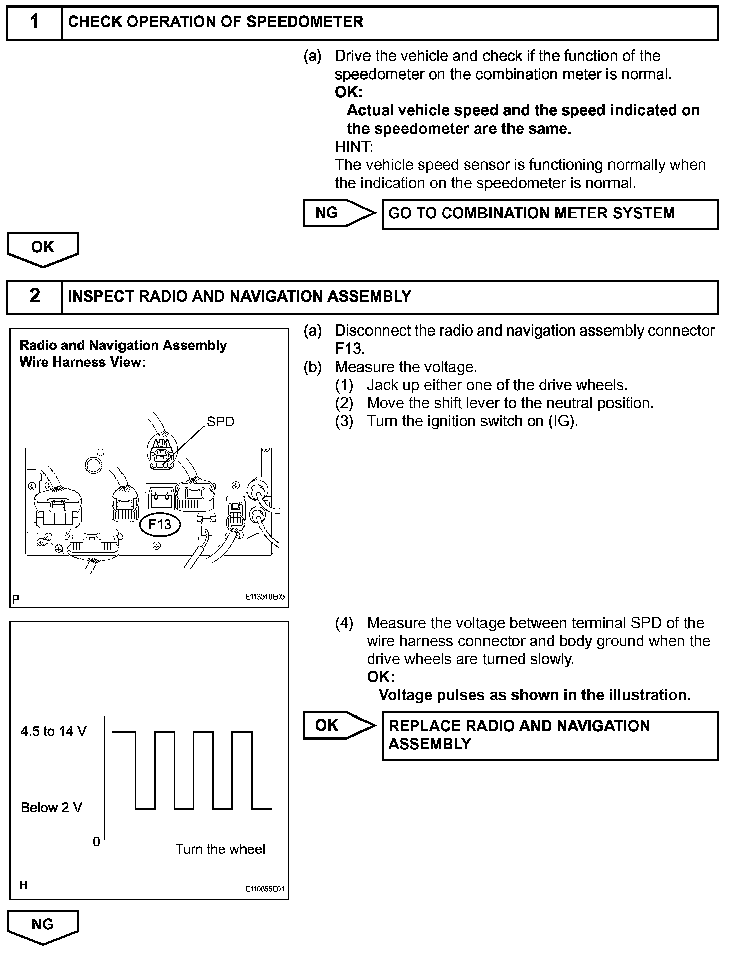 Vehicle Speed Signal Circuit Between Radio and Navigation Assembly and Combination Meter