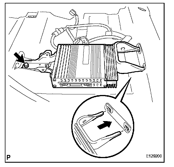 c. Remove the bolt and stereo component amplifier assembly as shown in the illustration.