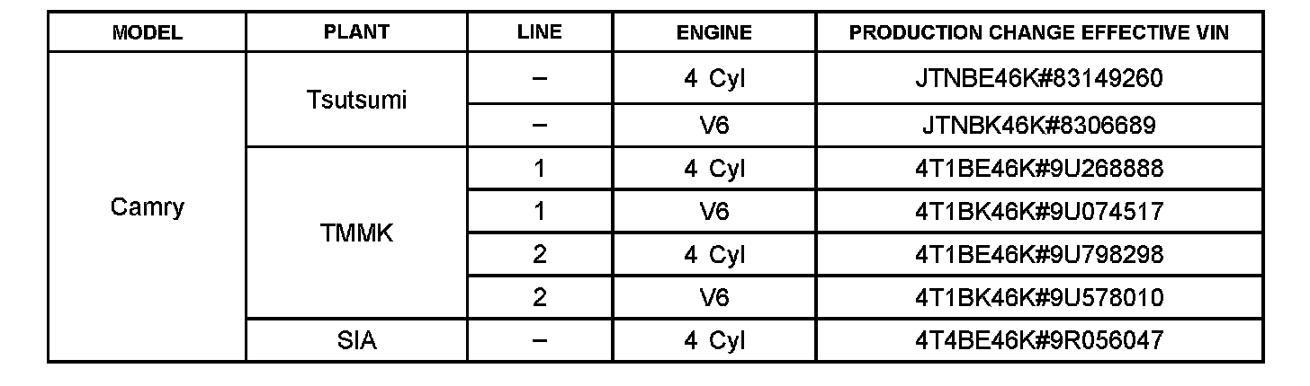 This TSB applies to vehicles produced BEFORE the Production Change Effective VINs shown.