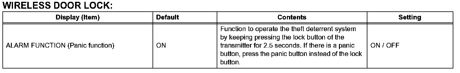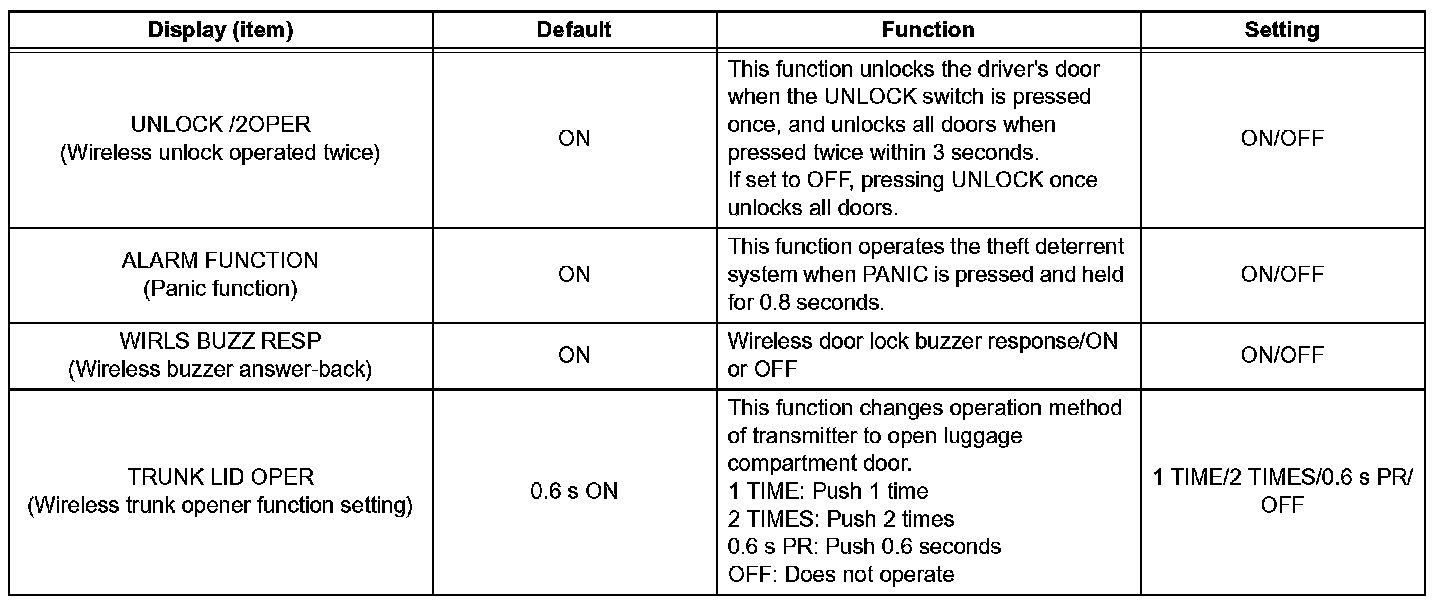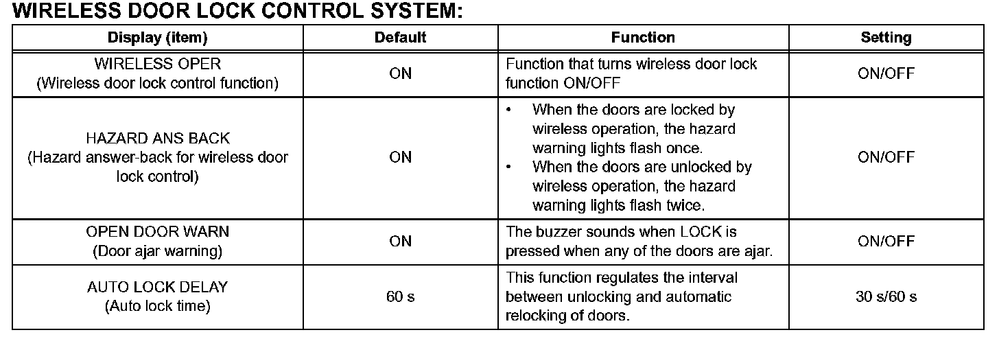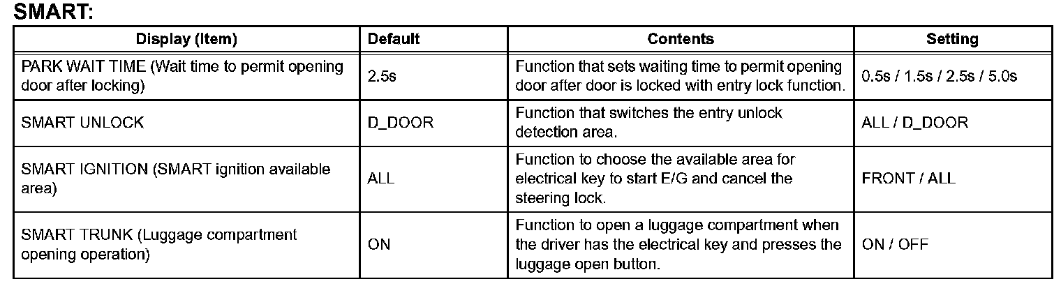 HINT: The function only changes the entry unlock mode of the smart key system. It does not switch the unlocking of the wireless door lock control.