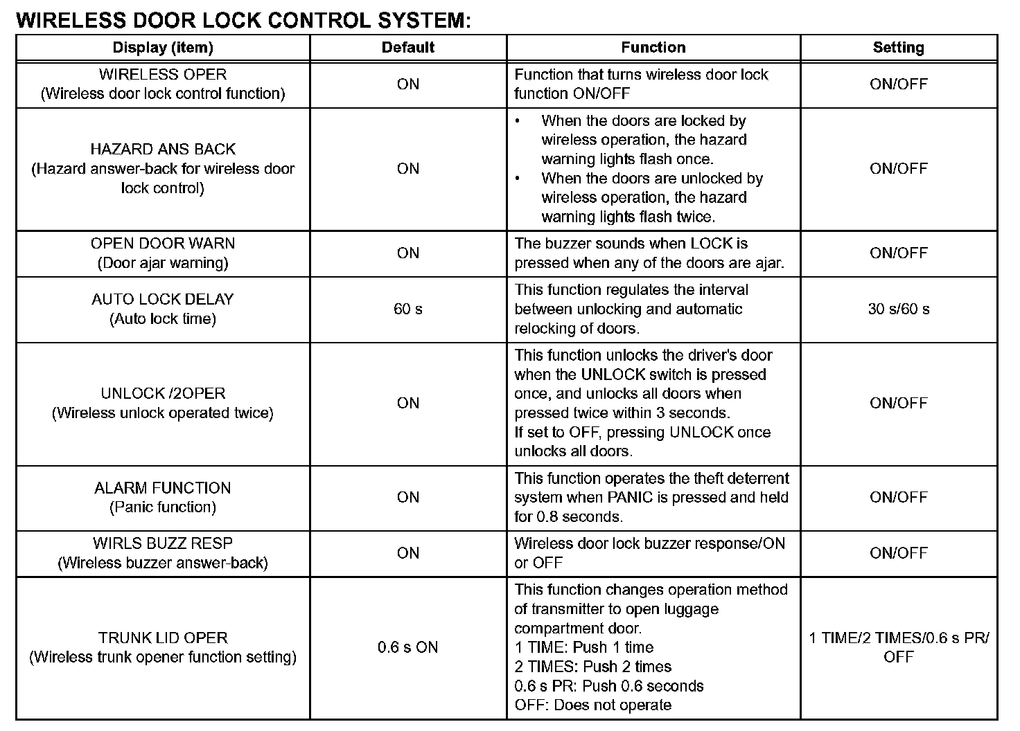 - When troubleshooting a function, first make sure that the function is not set to OFF.