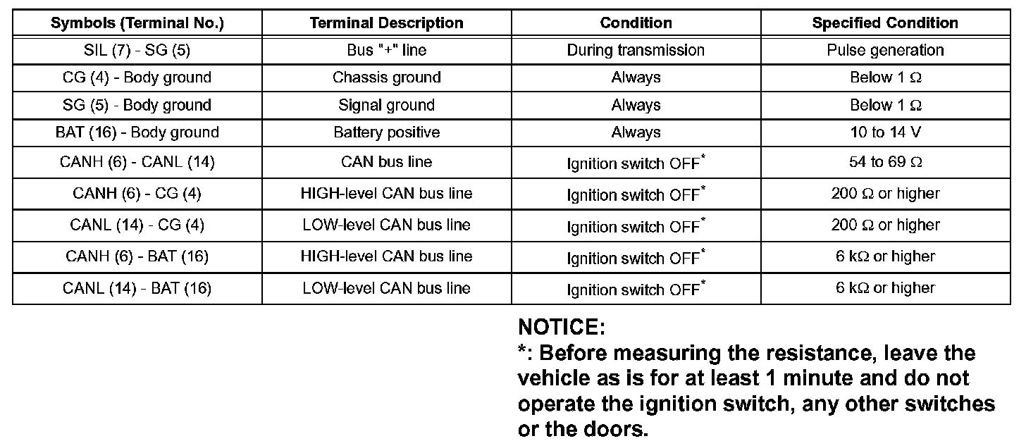 If the result is not as specified, the DLC3 may have a malfunction. Repair or replace the harness and connector.