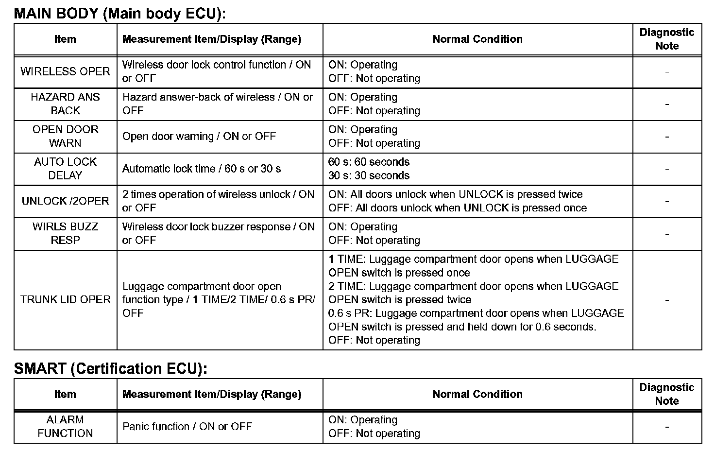 c. Enter the following menus: DIAGNOSIS / OBD/ MOBD / BODY or SMART / DATA LIST.