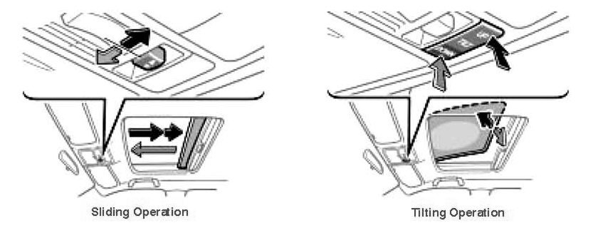 1. Push and hold the TILT UP" switch until the moon roof glass reaches the full tilt up position.