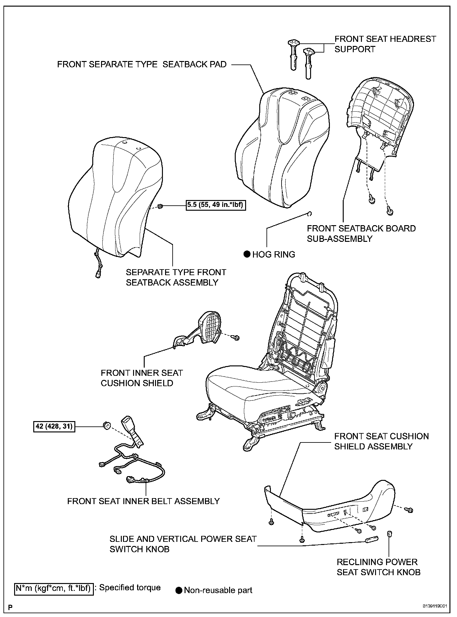 13. REMOVE SEPARATE TYPE FRONT SEAT BACK ASSEMBLY