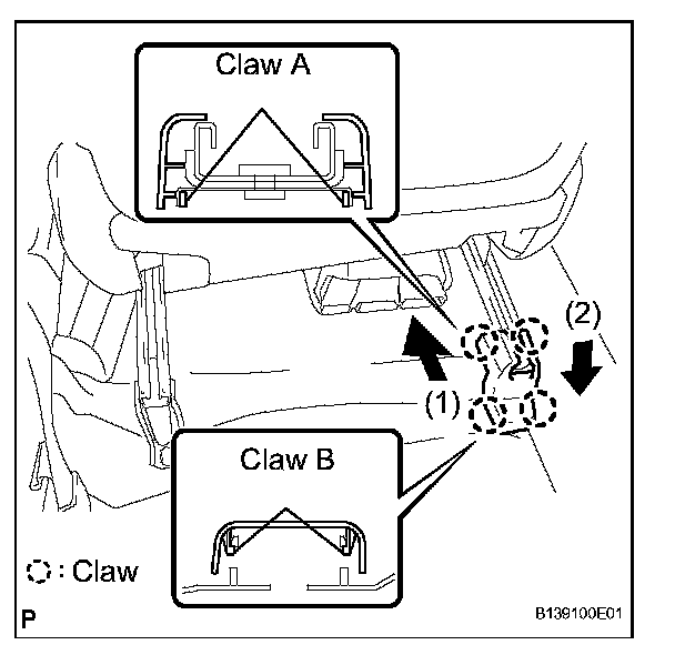 b. Push the seat track cover to engage claw B.