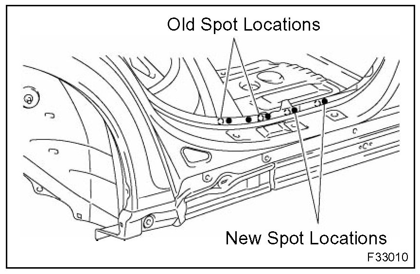 2. Plug welding should be done with a MIG (Metal Inert Gas) welder. Do not gas weld or braze panels at areas other than where specified.