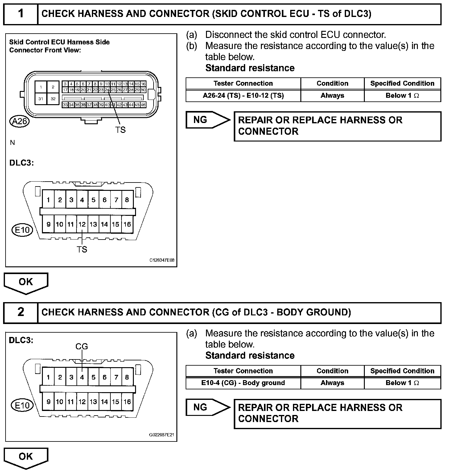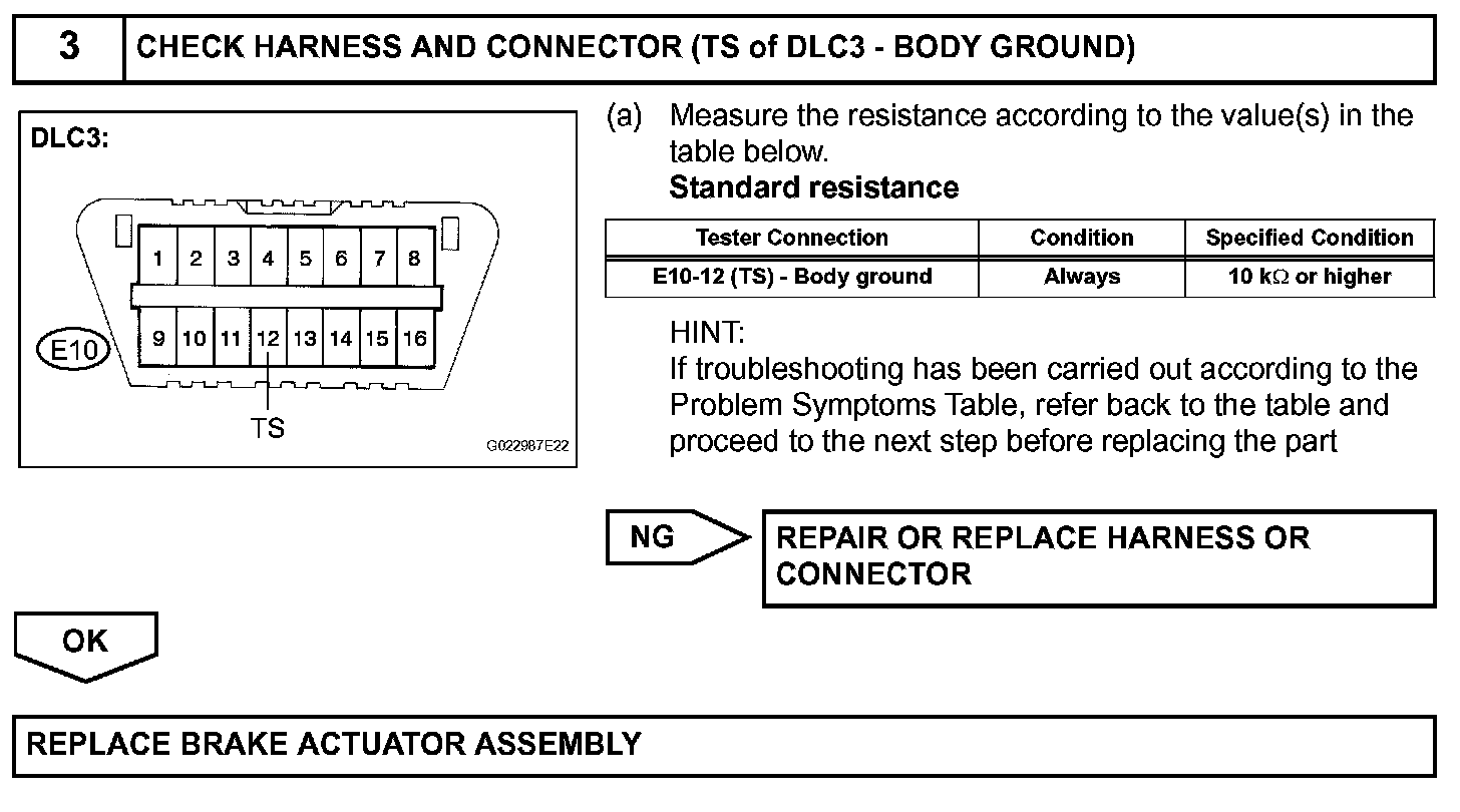 Transition to the sensor check mode can be performed by connecting terminals TS and CG of the DLC3 and turning the ignition switch from off to on (IG).
