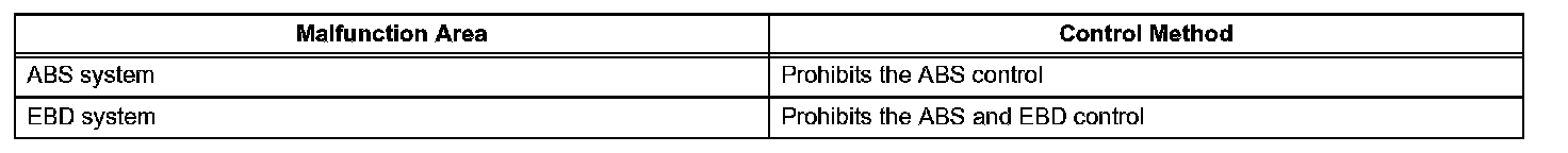 ABS control will be prohibited, but EBD control continues as much as possible. If EBD control is impossible, the brake warning light will come on to warn the driver.