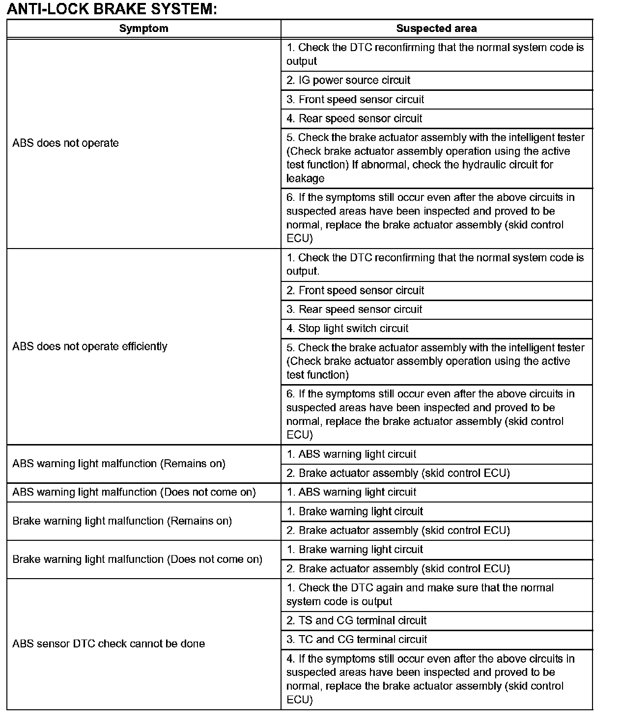 PROBLEM SYMPTOMS TABLEProblem Symptoms Table-Anti-Lock Brake System: