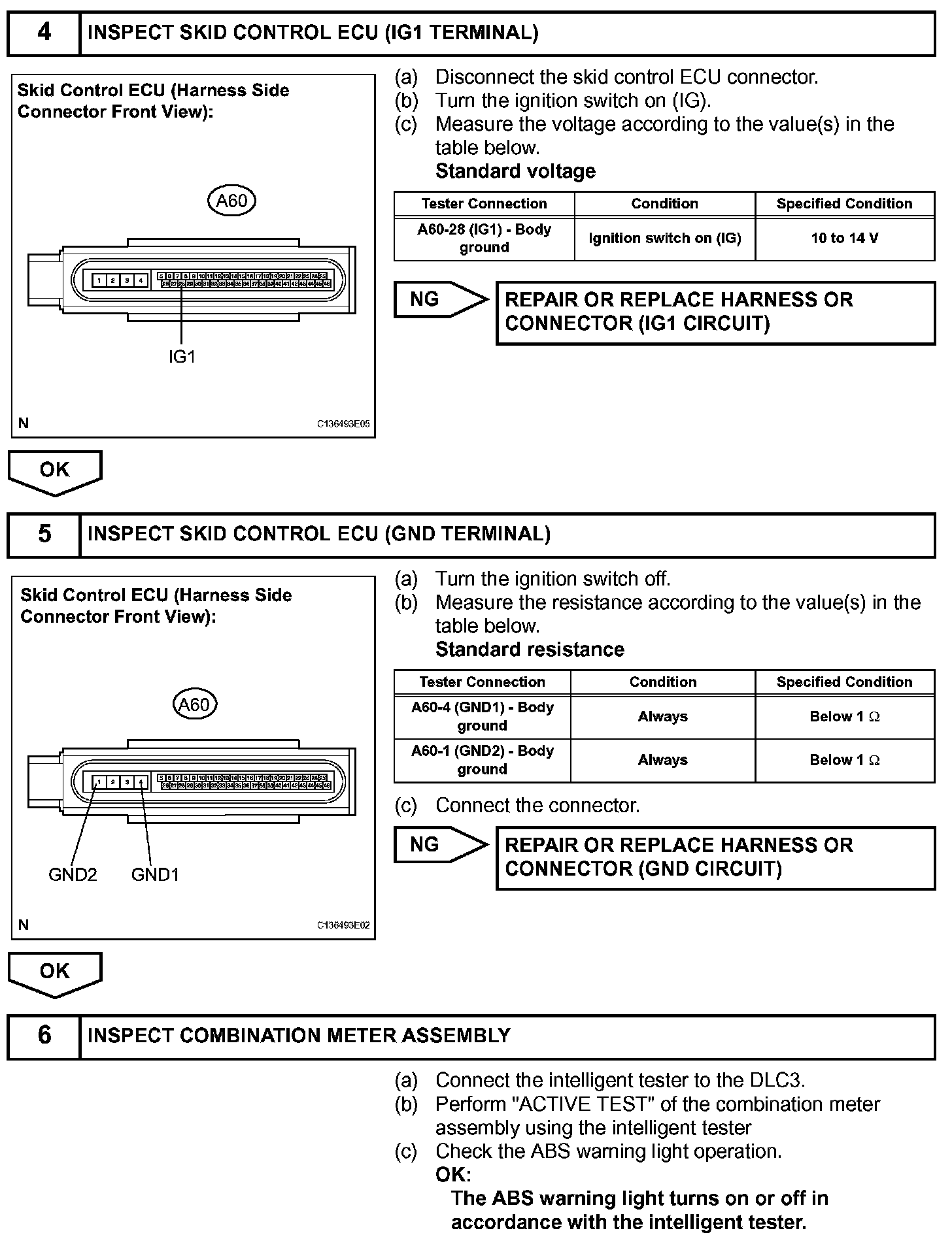 - There is an open in the wire harness between the combination meter assembly and the skid control ECU.