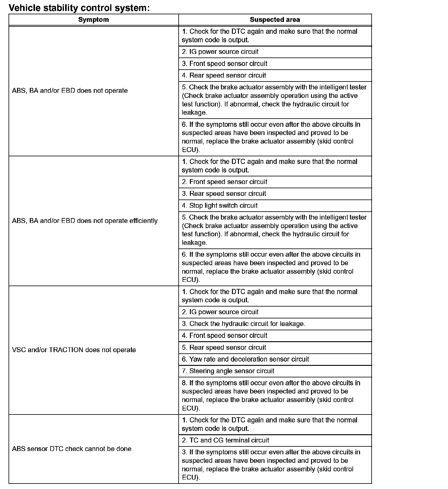 Problem Symptoms Table-Vehicle Stability Control System (Part 2):